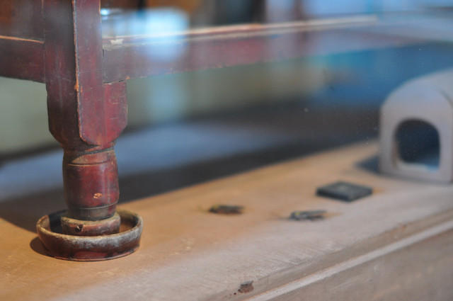 四個桌腳都擺上這個陶瓷做的凹糟