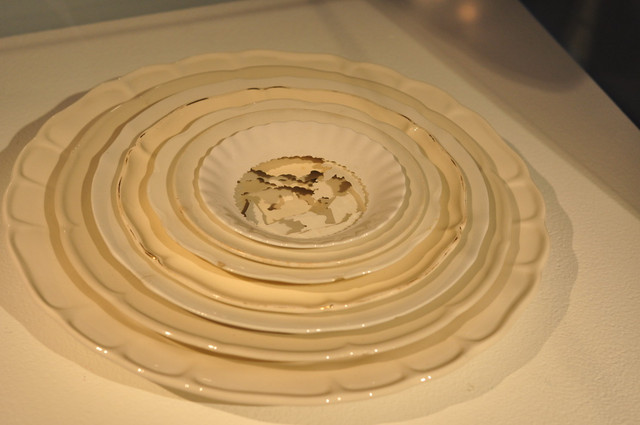 將每個盤子擷取出一小部份,當放在一起時,卻成了另一件作品